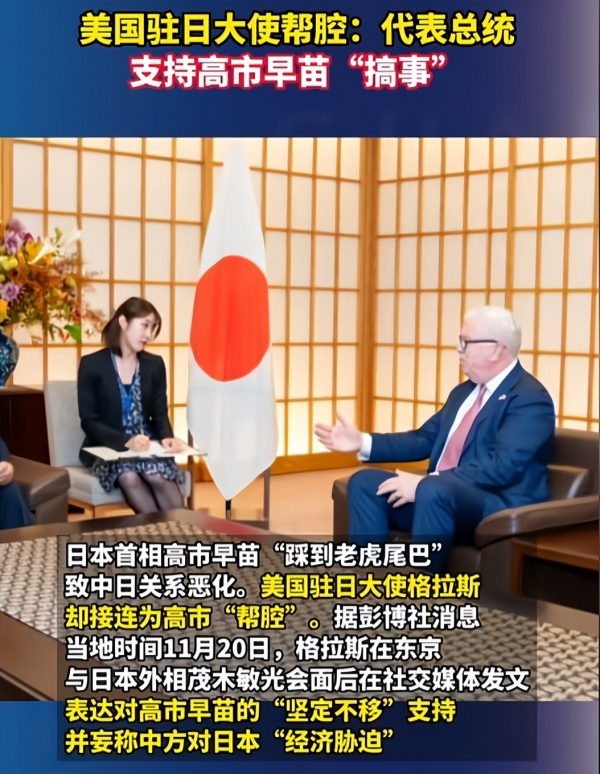 11月20日美驻日大使格拉斯与日本外相会面后的表态,充满了话术陷阱,他特意强调"代表总统和个人支持高市早苗",而非"代表美国政府"。