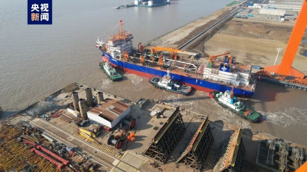 "新海鲟"号由中交上航局投资、振华重工建造,预计2024年9月份正式交付,交付后将主要用于沿海港口、深水航道的疏浚吹填及海岸维护等工程,将为国内绿色清洁航运发展注入新动能。