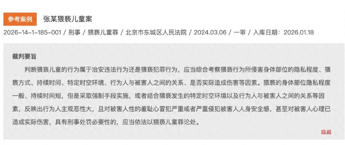 现实中,猥亵儿童行为时有发生,但并非所有此类行为都构成犯罪--有的仅需治安拘留,有的却要承担刑事责任。近日,北京市东城区人民法院审理的一起猥亵儿童案,就清晰界定了二者的边界,该案案号为(2024)京0101刑初123号,判决已发生法律效力。