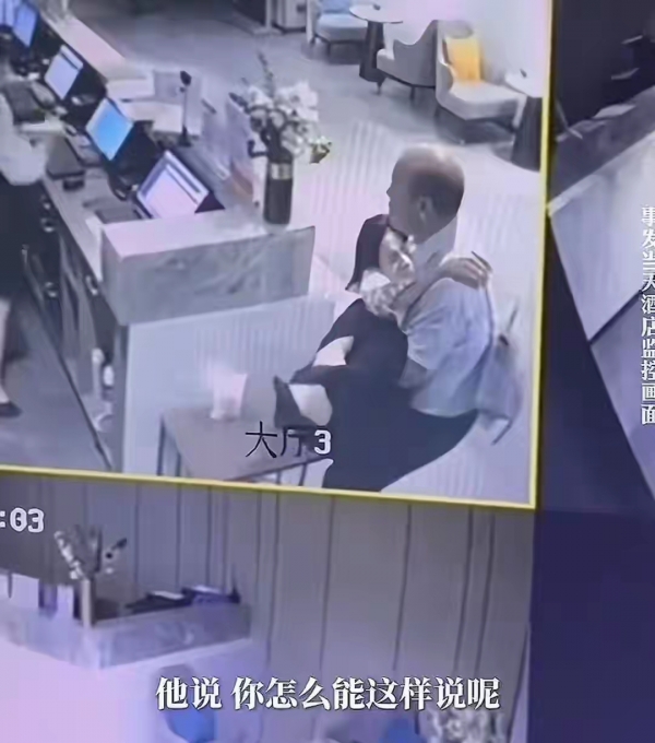 画面里可以看到,王某先在前台办了入住手续,然后搀着、抱着她进电梯,最后一起进了房间。期间崔丽丽的手有时搭在王某的肩膀或背上,但整个人看上去意识很模糊,是不清醒的状态。