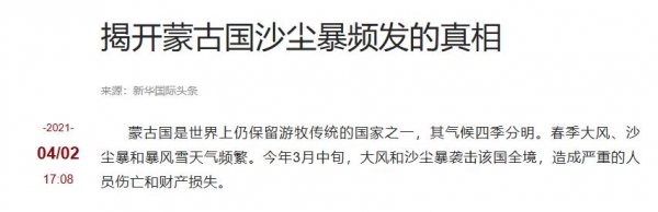 事实上,如果仔细看的话,这些沙尘暴并非来自中国,其"罪魁祸首"是邻国蒙古国。