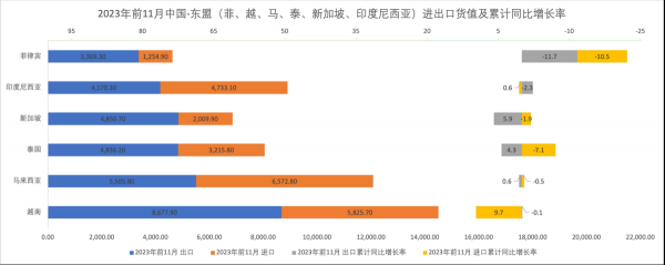 【中国与东盟的进出口货值增长率,菲律宾垫底】