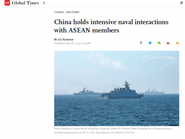 【环球时报报道中国与东盟加强军事交流】