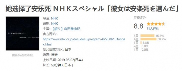 纪录片中,没有离奇曲折的剧情,也没有过度渲染,而是平淡温和地拍摄了日本一位普通女子有尊严地死亡过程。