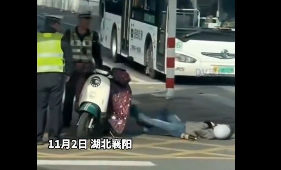 11月2日,湖北襄阳,女子因骑车违规被拦下,下一秒竟躺着"撒泼打滚",交警:有时候真的挺想报警的