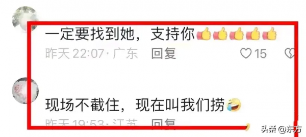 网友们纷纷留言:"哥们儿,这事儿交给我们,咱们这就帮你找人。""太甜了,蹲个后续。""几个小时过去了,咋还没收到喜糖呢?""你们俩直接领证得了,全国网友给你们做见证,红包都准备好啦。"