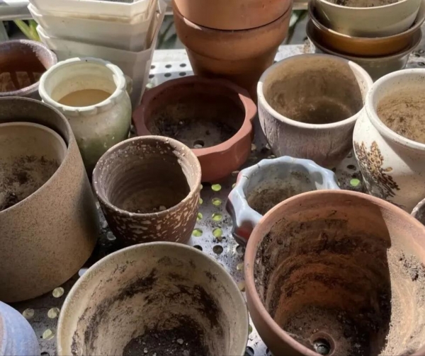 里面全是干土,有的还残留着死掉的花根。想着"万一下次养花还能用",结果一放就是一年。