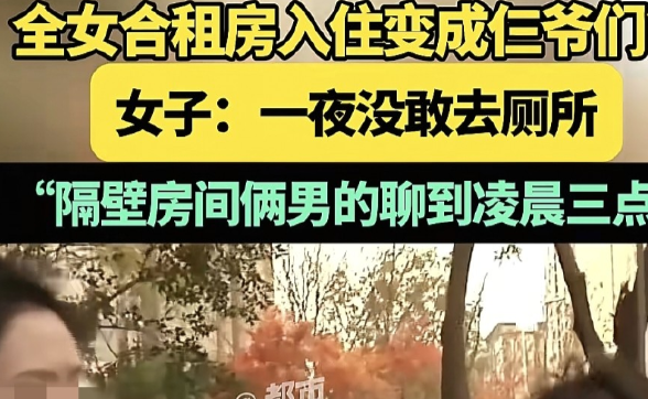 河南郑州,王女士,为省房租,在小程序通过中介选了"全女合租房",房租每月500元,押金500元。签合同时,中介称签合同的是女生,但可能有对象,王女士入住第一晚,就发现房里有3个男人,隔壁俩男子聊天到凌晨三点,凌晨又回来一对情侣,吓得她一夜没睡,厕所都不敢去,第二天王女士要求退500押金,中介却不同意,还称屋里有个女的,不行就换房。