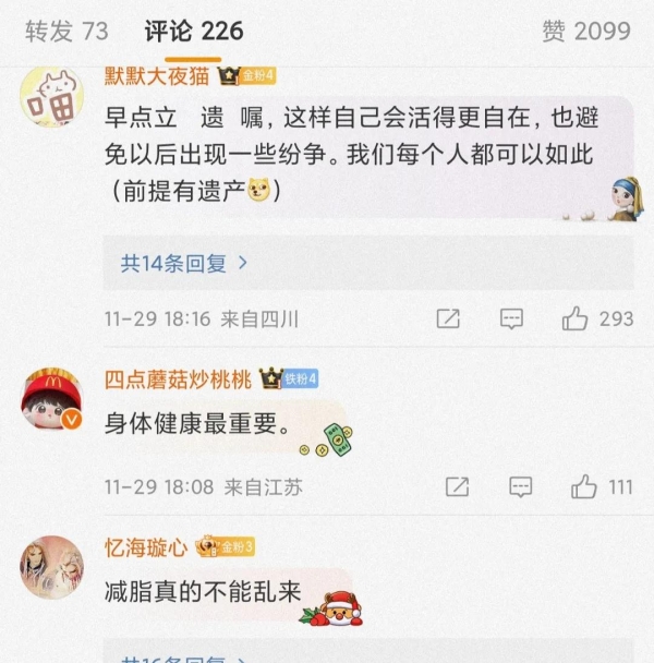 看到李连杰自曝交代后事的消息,一些网友纷纷建议,应该早点立遗嘱,这样活的才会更自在,也避免以后出现纷争!