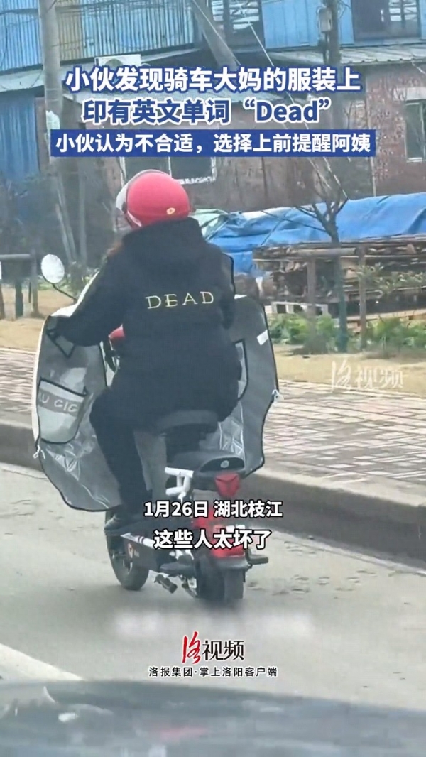 原来大妈的外套上,印有一个英文单词,而这个英文单词,让小伙觉得很不合适。