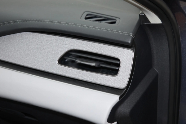 新款海豹06 DM-i在设计层面主要针对内饰细节进行调整,中控台依旧有着海浪式的曲线,空调出风口附近的钢琴烤漆装饰板取消,修改为仿布纹皮革饰板,更易于打理。此外,中央扶手处的水晶挡把取消,引入家族最新的电子怀挡,功能按键从圆形布局调整为横向一排,前排座椅也不再是一体式座椅,增加可拆卸头枕,略微提升了实用性。