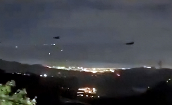 疑似美军三角洲特种部队的直升机在委内瑞拉首都加拉加斯飞过