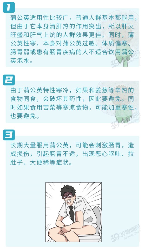 蒲公英性寒,长期食用,还存在一定的疾病风险,因此不是人人都能泡水喝的。