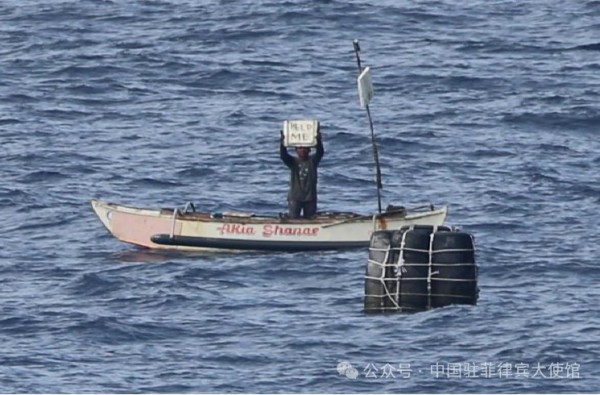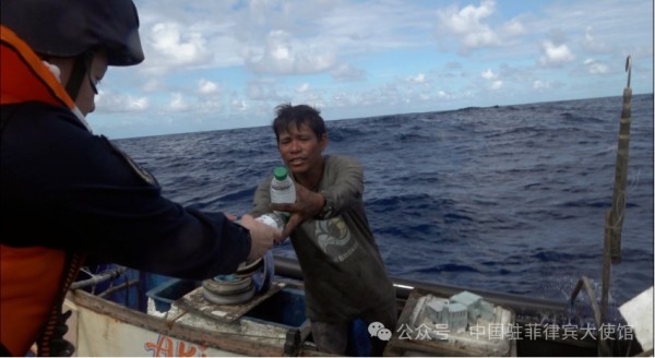 中国海军迅速行动,派出救援艇向菲方渔船紧急提供饮用水、食品等必要生活物资,有效保障渔民生命安全。期间,中方与菲律宾海警船4408号进行了必要沟通协调。
