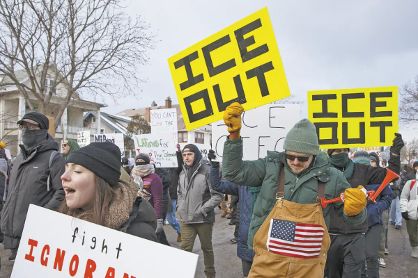 1月10日,美国明尼苏达州明尼阿波利斯市,上万人参加抗议移民与海关执法局(ICE)暴力执法的示威活动。IC photo