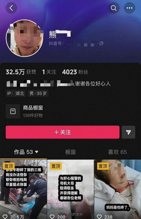 这句"没撞到"落下时,熊先生的情绪一下子翻上来,他在病床前问得很直白