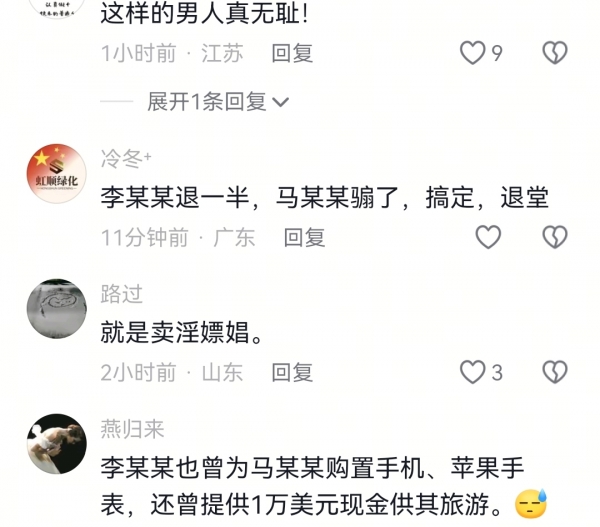 直到案件进入司法程序,马某某才终于承认,他与李某某是存在非正常男女关系的"亲密朋友"。他也提及,李某某曾给过他1万美元现金用于旅游,并送过他手机和苹果手表等礼物。辩护方则将这种早期马某某给予李某某几千至上万元零花钱的模式,定义为他们之间一种长期稳定的"包养式经济供给关系"。李某某的母亲则是在案发后才惊悉女儿这段持续多年的隐秘关系,在她看来,女儿更像是"受到了蒙骗"。