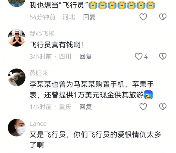几年前,飞行员马某某在巡航时写下:"我在万米高空上给你写了这些……感谢你喜欢我很晚很晚等我,很早很早接我电话。"字里行间,满是穿越云层的浪漫。任谁也想不到,短短数年后,还是这个人,说的却是:"我告诉你,截至现在700多万你欠我的钱都没有给我。你涉及到诈骗、转移财产。"