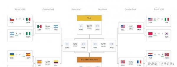 北京时间10月10日,最后2场1/8决赛准时开打,美国队对阵意大利队,原以为这是一场强强对话,结果比赛开始后,美国队攻势凶猛,一点不怵意大利队,上半场第15分钟,美国队先进1球,1-0领先,下半场,美国队又连进2球,最后美国队3-0大胜意大利队,晋级8强;另外一场比赛是摩洛哥队对阵韩国队,这是C组第1与B组第3的较量,第8分钟,摩洛哥队球员禁区内射门,皮球打到韩国防守球员腿上反弹入球门,1-0,摩洛哥队运气太好了。
