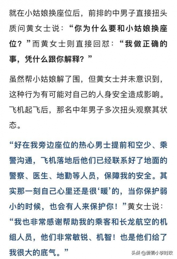 但这位杭州女子,却选择了一条截然不同的道路。她选择勇敢站出来!俗话说:"路见不平,拔刀相助"没错她就是这样做的,她勇于直接站出来斥责男生的行为,说你刚刚的行为我已经拍下来了,你要再骚扰她,下飞机就报警抓你。直接吓退了男子!