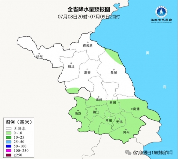 现在说说它对江苏的影响。昨天啊,江苏不少地方真的下雨了。一下雨,温度马上就低了。有些地方温度直接掉到二十多度,感觉一下子舒服了!没下雨的大部分地区,温度在三十一、二度徘徊,也比前些天好一点。