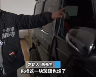 朱先生说,这辆大G是去年2月份才买的,结果自己开了不到半年,整个车侧边到后轮部分都被撞坏,连右侧的副驾驶玻璃也烂了。