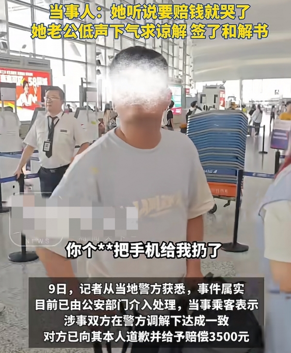 男子说,警察到场后,这对夫妻就怂了,后面警察让这对夫妻给男子道歉,并赔偿男子3500块钱和男子的路费。