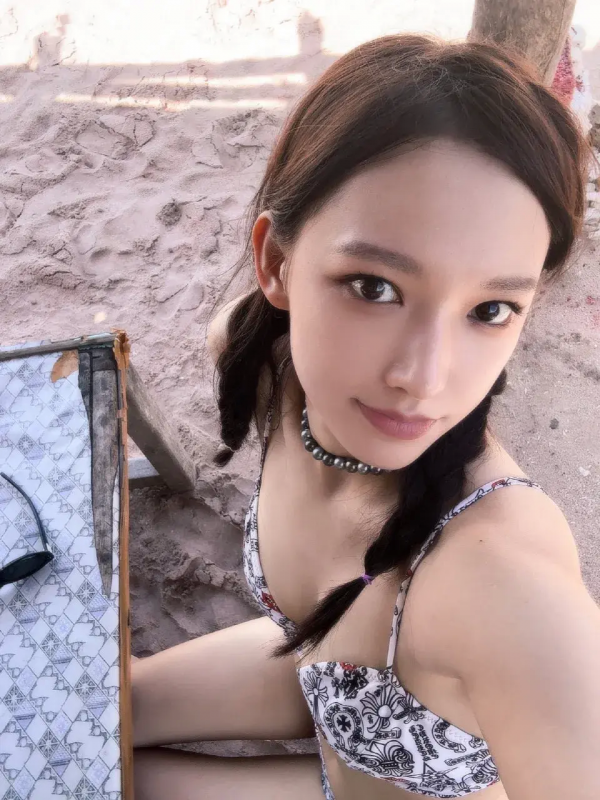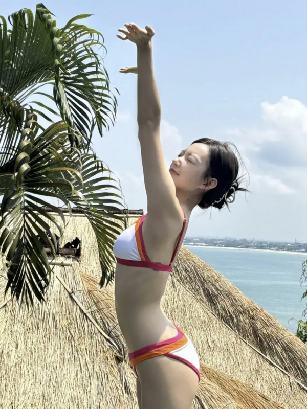 大大方方的展示自己的事业线,网友都说潇潇看起来很壮,但是我并不这么觉得,身穿泳衣的她。不过从那一方面来看,她都是属于那种纤瘦性美女。