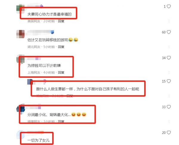 还有网友说,他们虽然离婚了,但是"夫妻"同心协力才是最幸福的,毕竟一切都是为了女儿。