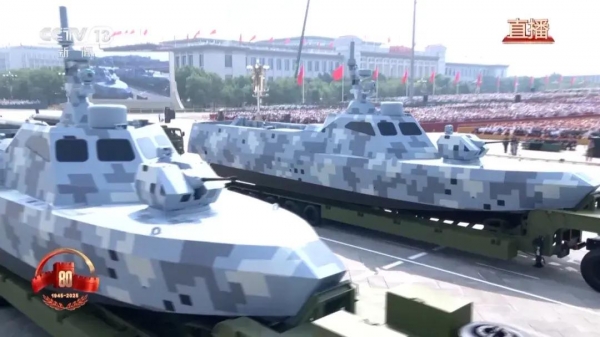 (阅兵现场展示的海上无人作战装备)