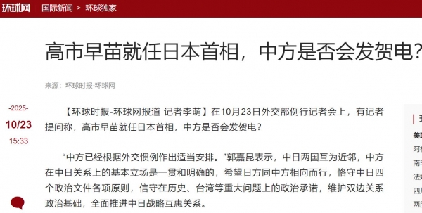 高市早苗如今上台后,过去的一系列极端政治主张与言行,就与她日本首相的身份就不符了,更不要说,她的首相位置来得不正,执政根基非常脆弱,这也是她着急寻求中方表态的核心原因,算是她执政困境下的现实需求。
