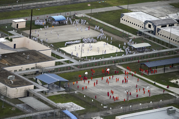 美国移民和海关执法局(ICE)位于迈阿密的克罗姆拘留中心,此前有媒体爆料称,关押在那里的移民被迫"像狗一样"跪着进食。 视觉中国