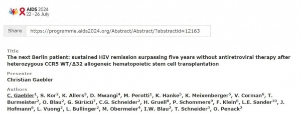 近日,全球艾滋病治疗领域传来了振奋人心的消息。一名60岁的德国男子在接受造血干细胞移植多年后,成功实现了艾滋病和白血病的"治愈",成为全球第七位被宣布治愈的艾滋病患者(被称为"第二位柏林病人")。在刚刚闭幕的第 25 届国际艾滋病大会(AIDS 2024)上,这一治愈案例的详细信息也被披露,这是首例接受CCR5德尔塔32杂合突变的 HIV 治愈病例。这一突破性成果再次引发全球关于造血干细胞治疗艾滋病的讨论和期待。