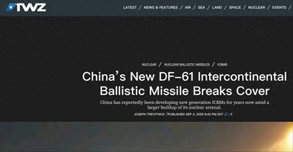 美国军媒《战区》一篇长文详细分析了阅兵式上出现的这一新型导弹,其措辞中流露出的疑虑与挫败几乎刺破了屏幕,他们一再强调,"东风-61"标志清晰可见,由16轮庞大的公路机动发射车搭载。