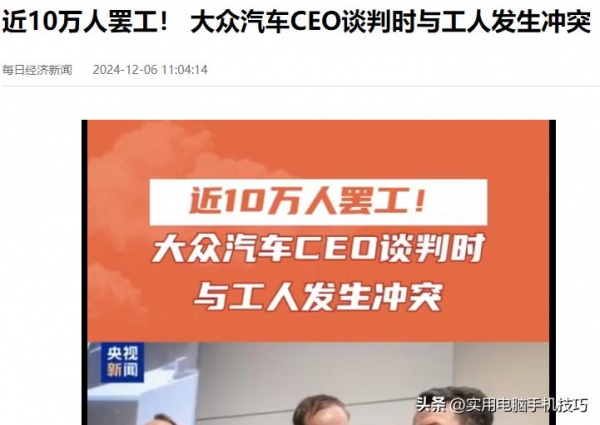 每日经济新闻--2024-12-06--近10万人罢工! 大众汽车CEO谈判时与工人发生冲突