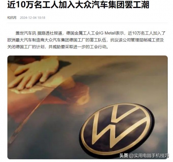 和讯网--2024-12-04--近10万名工人加入大众汽车集团罢工潮