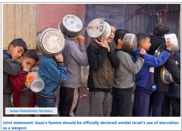 当地时间5月26日,70多个组织联合声明呼吁国际机构正式宣布加沙进入饥荒状态。声明截图