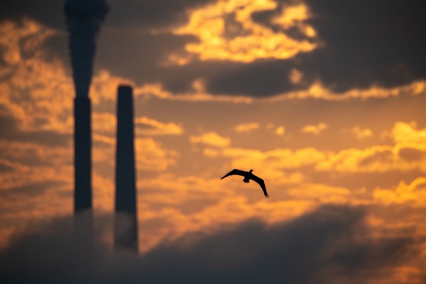 9月18日,美国俄亥俄州辛辛那提市,迈阿密堡发电站烟囱排放的污染物与蒸汽升腾。 IC Photo