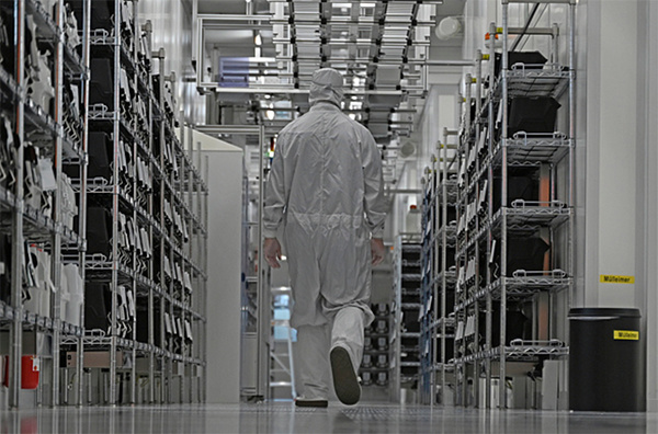 安世半导体的一名员工走过该公司的洁净室。 视觉中国