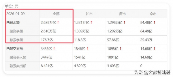 截至1月12日的两融数据