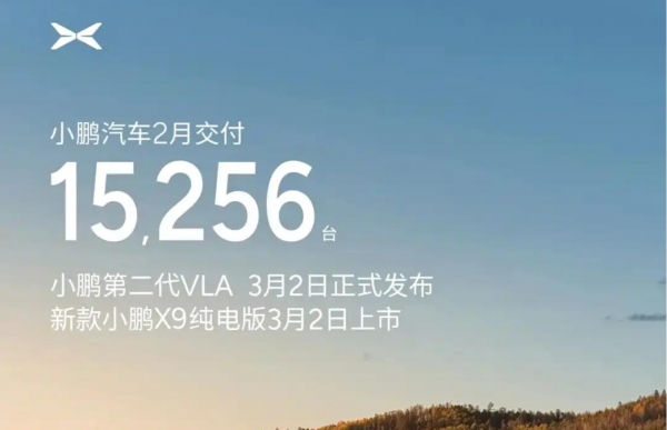 小鹏汽车:2月共交付15256辆