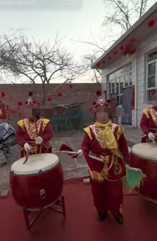 走到院子门口的时候,还有腰鼓队的人在,据知情人透露,为了照顾村里父老乡情,直接请了他们村里面的腰鼓队老人