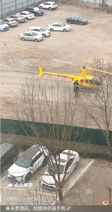 有一网友直呼:羡慕,太原一对新人结婚用直升机接亲。