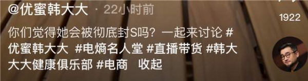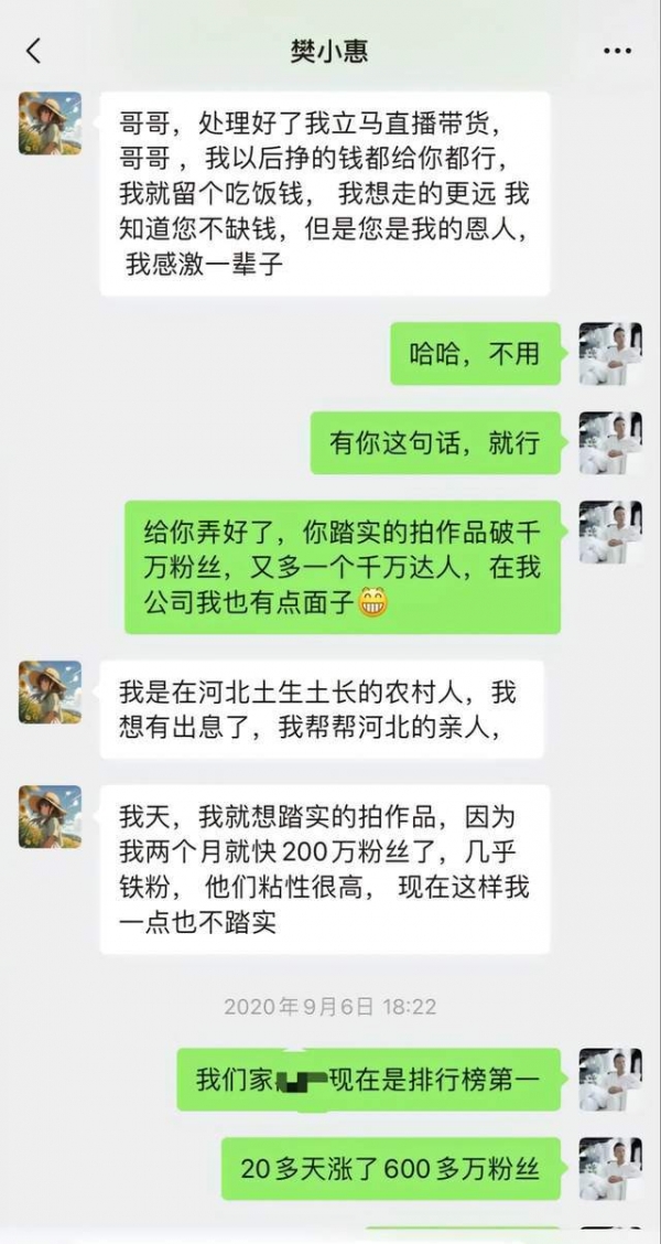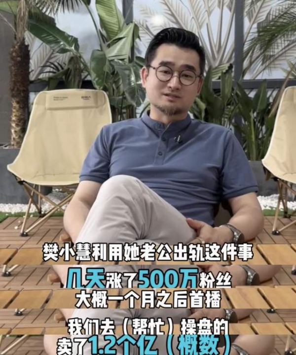 韩大大透露,樊小慧利用张海波"出轨"风波(实际是隔着时间差),一周的时间涨粉500多万,此后再次复出,便来了一次直播带货,而带货就是韩大大团队操作的,前前后后一共1.2个亿。