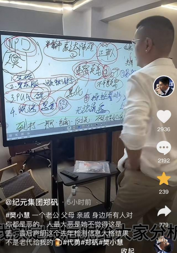 对比来说,郑矾的曝料更直接,他直接表示樊小慧患有NPD,就是所谓的自恋型人格障碍。正常情况下,看起来和普通人并没有什么区别,然而关系变好之后,便会立即"黑化",将所有的事情变成自己的事情,凡事以她为主导。