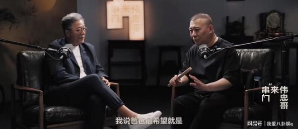 访谈中王伟忠不可避免地聊到了大家最关注的话题-郭麒麟,被问到儿子的感情生活时,郭德纲坦言希望能在五十岁的时候抱到孙子,儿子郭麒麟的反应也是答应的很爽利,一句"好的",不过正处于事业上升期的郭麒麟似乎没有时间去考虑终生大事,所以郭德纲也知道儿子是先糊弄他让他高兴着。