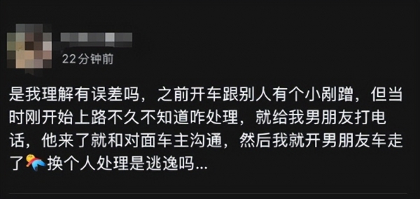 然而在等待结果的时候有网友发出疑问,发生事故,自己不想处理换一个人处理,自己开车走属于肇事逃逸吗?