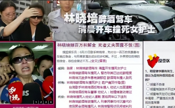 最严重的一次还是07年,歌手林晓培在没有行驶证并且还酒驾的情况下,撞上了一位路人,伤者被送到医院抢救后无效死亡。