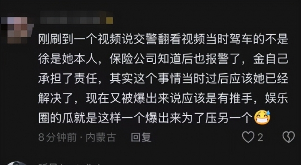 但事情没有到这里结束,有网友在网络上替金晨澄清,表明当时发生事故后金晨报了保险公司并报了警,也是金晨自己承担的责任,当时的事故也是解决过了。