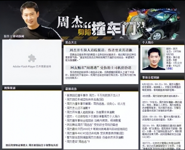 09年6月份的一个晚上,周杰和众多圈内好友结束聚会后,周杰开了一辆无车牌的车撞上了一辆私家车,导致车内有几人受伤。